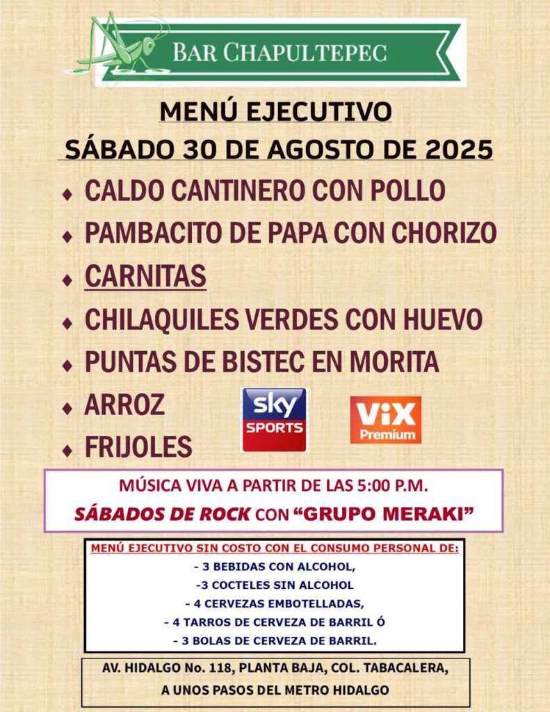Disfruta la última semana de agosto en tu Bar Chapultepec y lee Juego Primario.