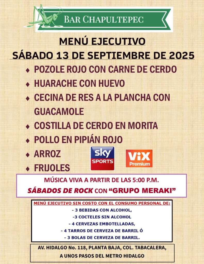 ¡Viva México! Disfruta desde esta semana las Fiestas Patrias en tu Bar Chapultepec.