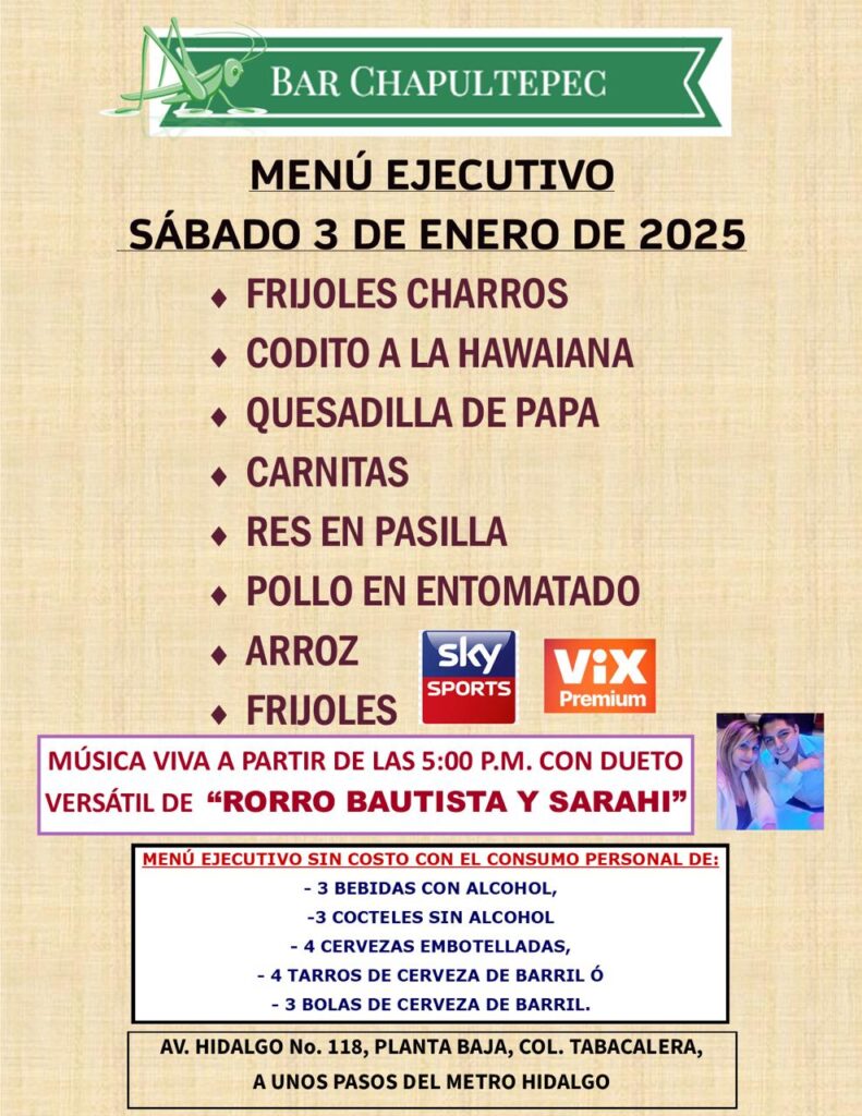 Celebra con alegría el 2026. Disfruta en tu Bar Chapultepec.Pasado el susto del sismo. Celebra el 2026 en tu Bar Chapultepec.