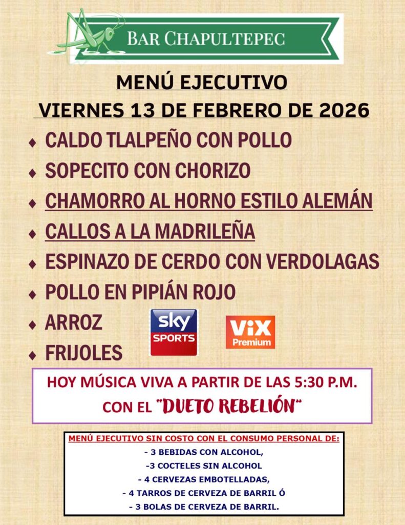 Te esperamos hoy en tu Bar Chapultepec. Pregunta por las nuevas promociones.